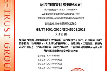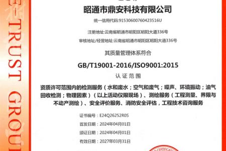 2003年11月10日,昭通市鼎安科技有限公司成立,初始主要從事第三方安全工程技術(shù)服務(wù),經(jīng)多年運營,發(fā)展為多專業(yè)綜合科技平臺,為社會提供多種專業(yè)技術(shù)服務(wù)工作。 現(xiàn)公司注冊資金為1200萬元,公司法定代表人:毛衛(wèi)旭。公司主要業(yè)務(wù):安全評價、安全標(biāo)準(zhǔn)化評審、安全工程技術(shù)服務(wù);環(huán)境監(jiān)測、職業(yè)衛(wèi)生檢測、檢驗;法律訴訟及非訴訟服務(wù);司法鑒定、固定資產(chǎn)投資項目節(jié)能服務(wù);工程咨詢;工程測量測繪;安全教育培訓(xùn)等。是安全生產(chǎn)服務(wù)、安全教育培訓(xùn)機構(gòu),也是環(huán)境監(jiān)測和職業(yè)衛(wèi)生服務(wù)機構(gòu),同時也是綜合的檢測檢驗、綜合科技平臺服務(wù)機構(gòu)。多年來為公、檢、法、司、軍、警、海關(guān)、仲裁、安監(jiān)、工礦商貿(mào)企業(yè)、社會團(tuán)體及個人提供多專業(yè)技術(shù)服務(wù)。